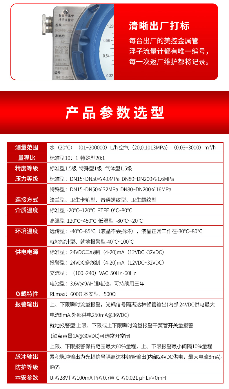 微型金属管浮子流量计是测量微小流量的金属管浮子流量计,可以测量微小流量的气体和液体。全金属结构设计,适用于高温高压和腐蚀性介质条件。该流量计可广泛应用于气相色谱分析、取样设备、实验室设备、制药设备、氮气、氩气、加氧设备以及核电、船用设备、检漏设备等。仪表安装流量调节针阀,方便客户对特定流量的设定和调节。咨询热线:400-152-1718