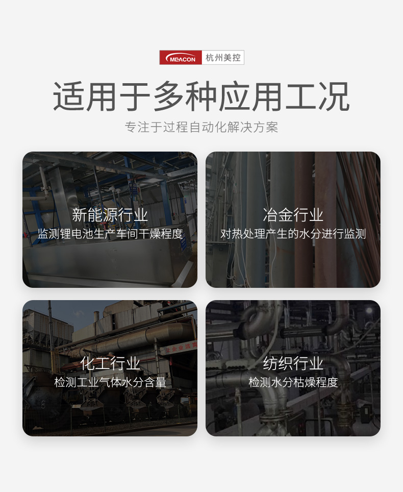 露点仪广泛应用于新能源行业、冶金行业、化工行业、纺织行业等水分程度的监测。