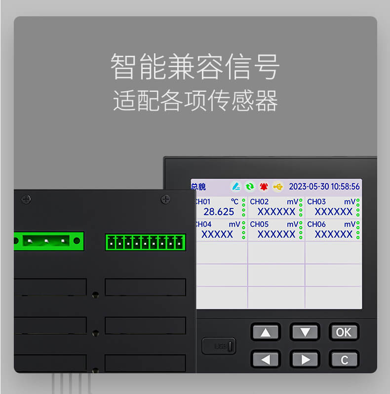 本产品为工业无纸记录仪,配置 3.5 英寸 TFT 真彩全视角液晶显示屏。可以接入多种类型的电流、电压、热电偶和热电阻等工业标准信号,实现温度、湿度、压力、液位、流量的显示、记录、超限监控、报表、数据通讯、信号变送以及流量累积、流量温压补偿等功能。可应用在冶金、石油、化工、建材、造纸、电力、食品、制药、工业水处理等各个行业。