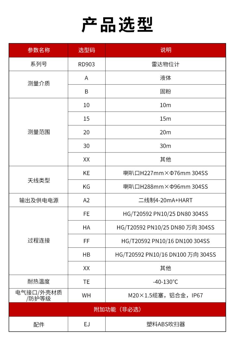 26GHz信号输出:4...20mA/HART(两线/四线) RS485/Mod bus