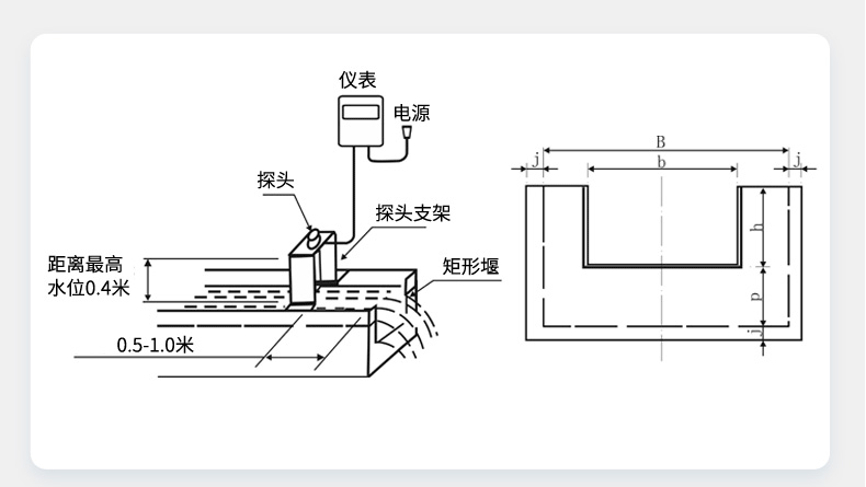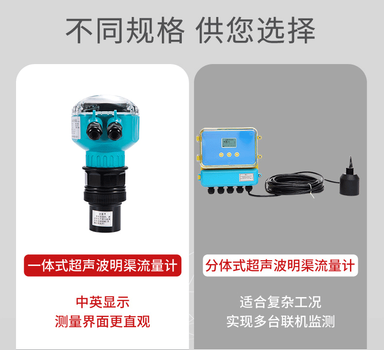 明渠流量计以流速-水位运算法为基础,并采用了先进的流速测量仪和水位测量仪,从而确保测速和运算的准确性的一种新型智能化流量系统,根据渠道的宽度和测量精度的要求,采用单探头法或多探头法明渠测流的数学模型。明渠流量计是非接触测量,能在较恶劣的环境中应用。明渠流量计应用场所有城市供水引水渠、火电厂冷却引水河排水渠、污水治理流入和排放渠、工况企业废水排放以及水利工程和农业灌溉用渠道等。(我们不提供配套的巴歇尔槽)
