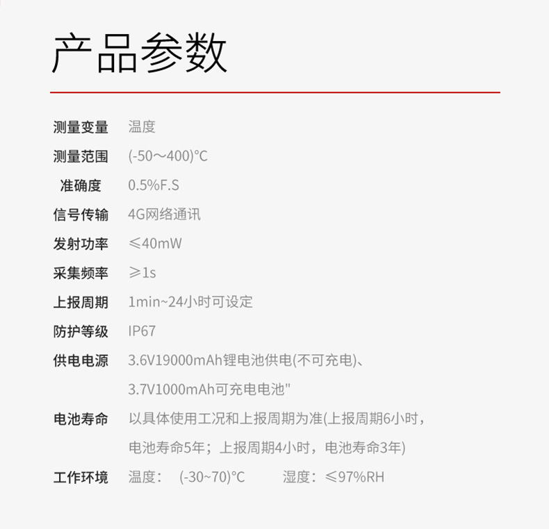 博天堂网址 TBP800无线远传温度传感器 4G通讯 电池供电 IP67防护 低功耗运行