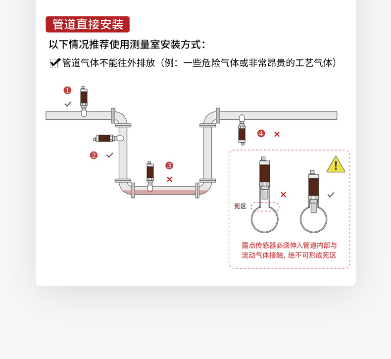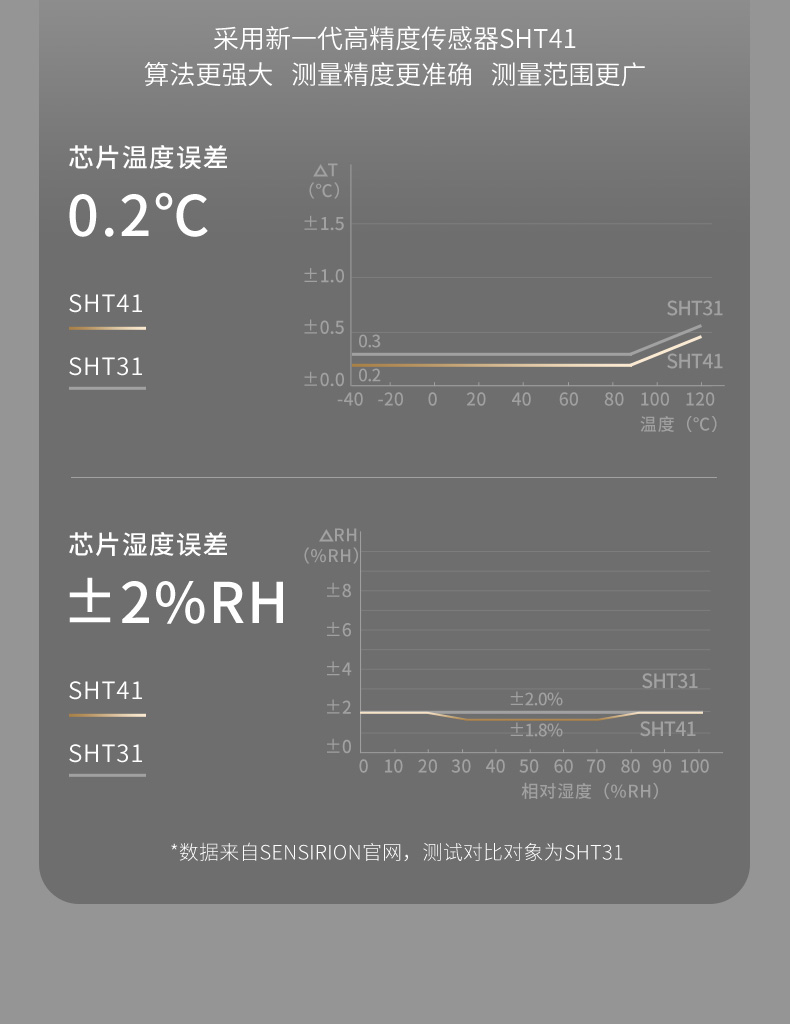 当测量介质的露点温度>-40℃td,高分子电容传感器对比于其他类型的传感器在该区间无论是精准度、响应速度还是长期稳定性均为最优,并且性价比最高; 革新的自校准电路设计,能自动补偿温度、污染、老化引起的电路漂移,提供长期可靠的高精度测量; 创新的温度补偿算法及出厂前多点温度的补偿校验,大大改善了传感器的温度漂移,保证了宽温度范围内的高精度测量。