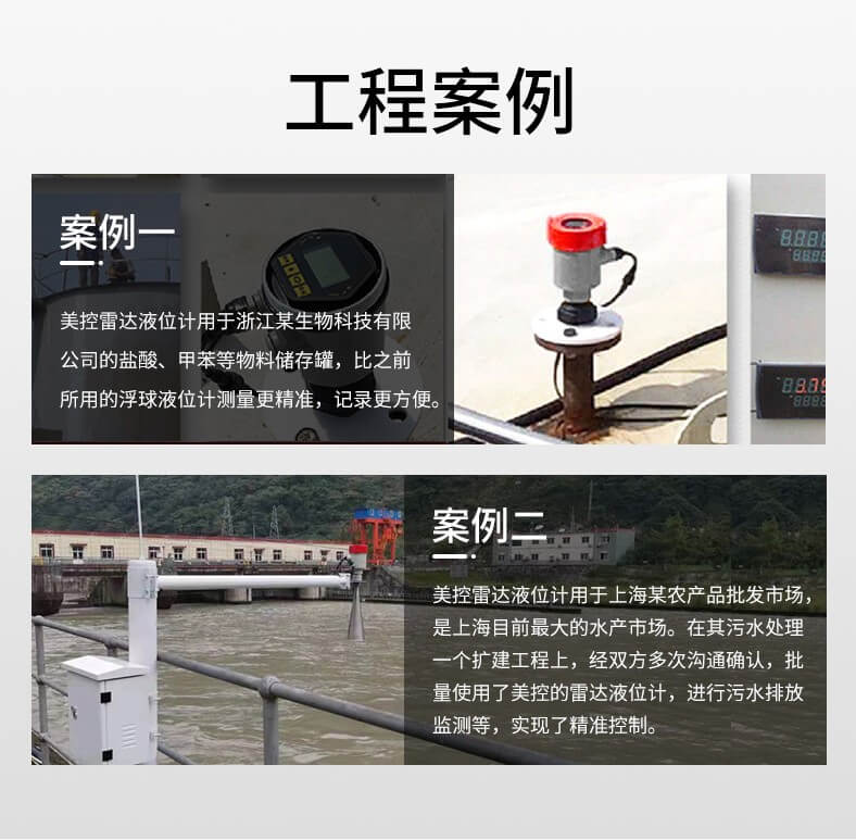 本产品波束能量低,对人体及环境均无伤害,还具有不受介质比重的影响、不受介电常数变化的影响、不需要现场校调等优点,广泛应用江河、水库、湖泊、灌渠、河道等自然水域水文监测场合。